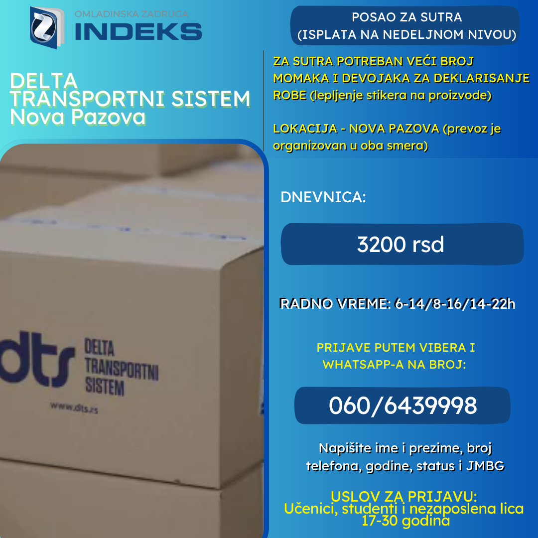 ZA SUTRA POTREBAN VELIKI BROJ MOMAKA I DEVOJAKA ZA DEKLARISANJE ROBE U NOVOJ PAZOVI