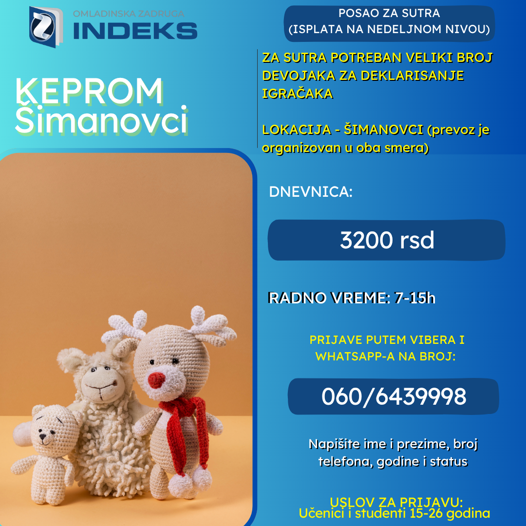 ZA SUTRA POTREBNI MOMCI I DEVOJKE ZA DEKLARISANJE ROBE U MAGACINU U NOVOJ PAZOVI