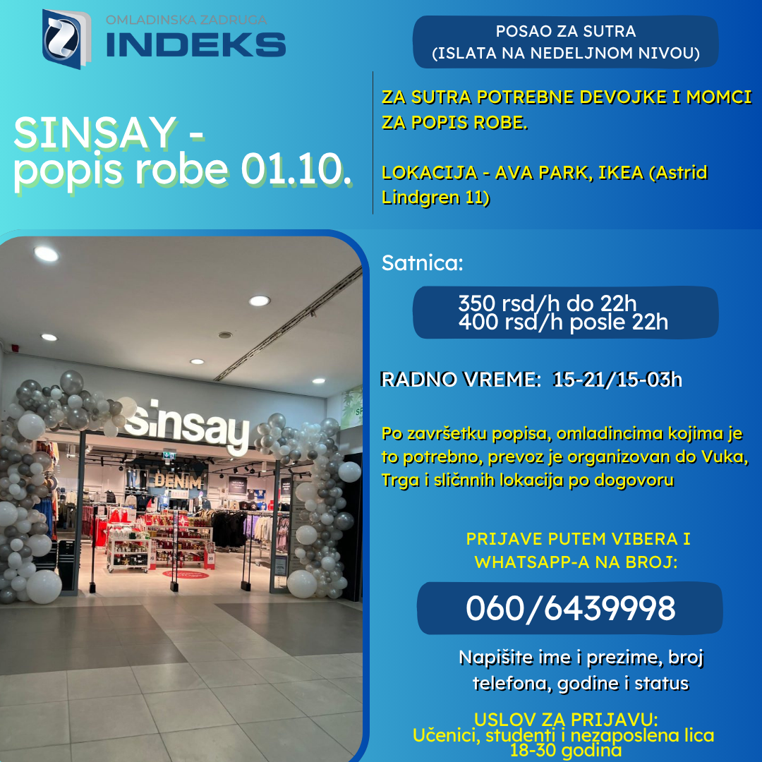 ZA PONEDELJAK POTREBNE DEVOJKE ZA DEKLARISANJE ROBE U MAGACINU U ŠIMANOVCIMA