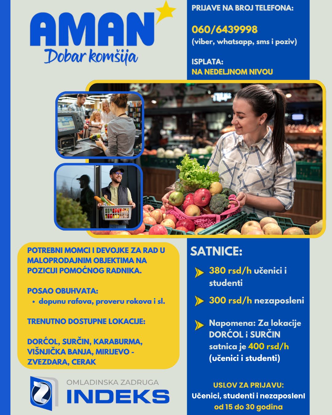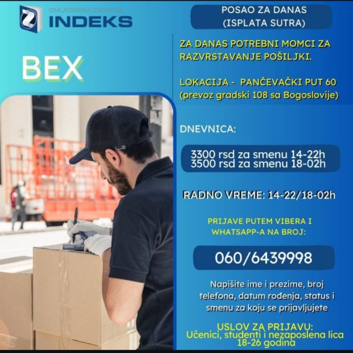 Sve informacije o aktuelnim oglasima možete dobiti putem VIBERA, WHATSAPP-a ili SMS poruke na broj telefona: 060/6439998