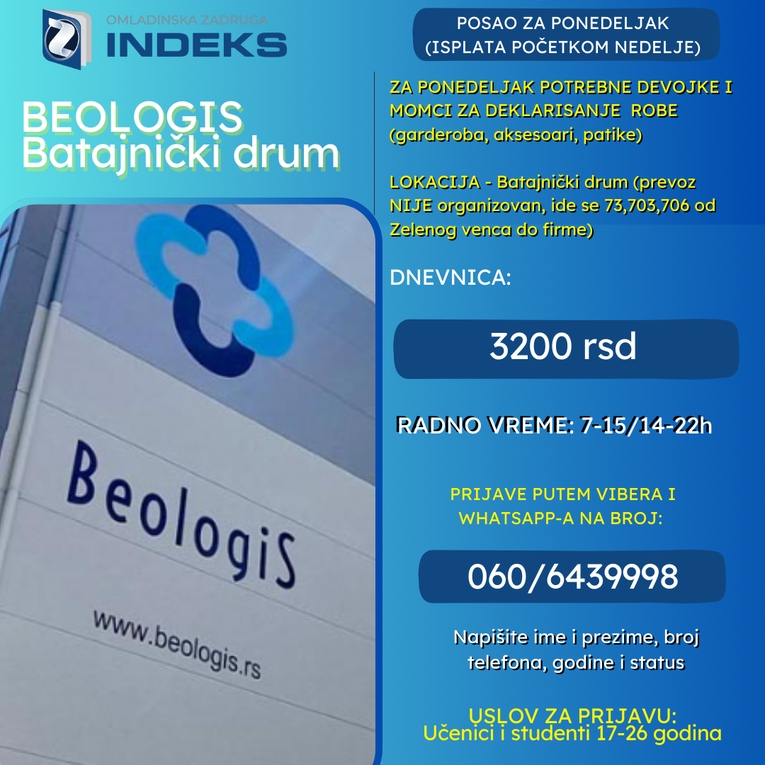 POTREBNI MOMCI I DEVOJKE ZA DEKLARISANJE ROBE NA BATAJNIČKOM DRUMU