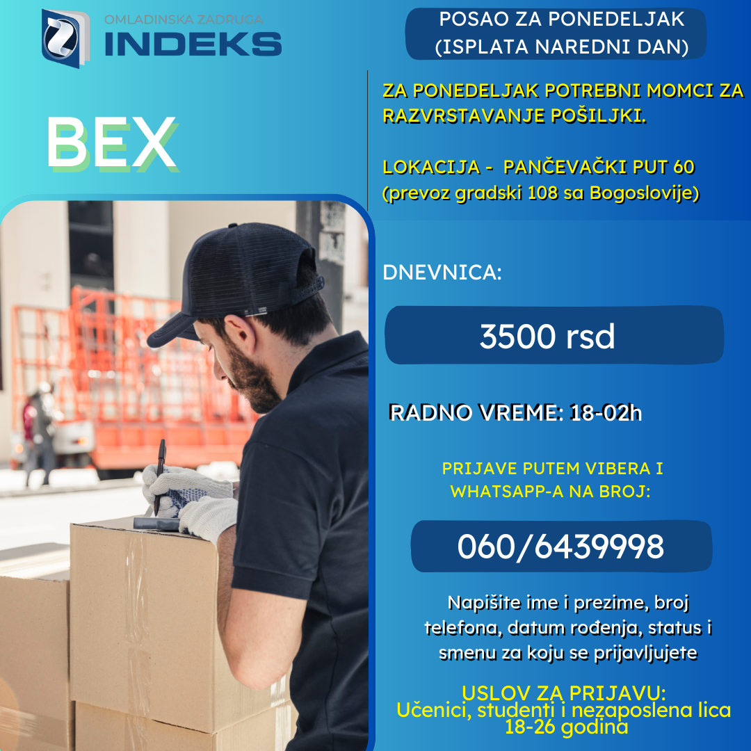 POTREBNI MOMCI I DEVOJKE ZA DEKLARISANJE ROBE NA BATAJNIČKOM DRUMU